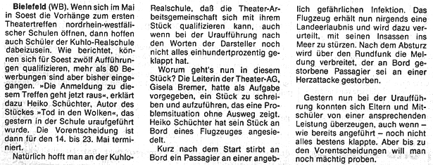 | 15. Mai 1985 | aus einer Bielefelder Tageszeitung: