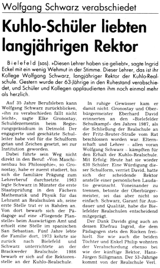 08.08.1999 - Herr Horst Weyer, Leiter der Kuhloschule von 1961-1971 ist verstorben.