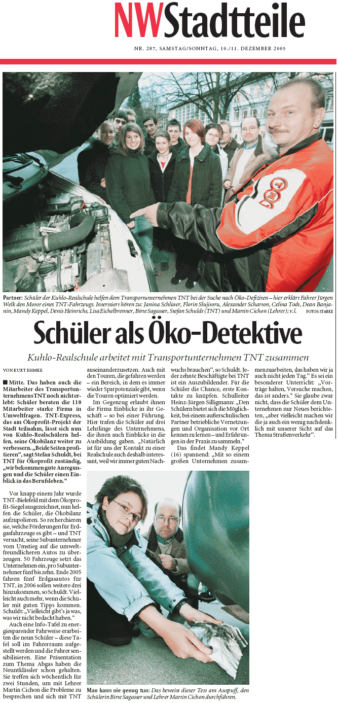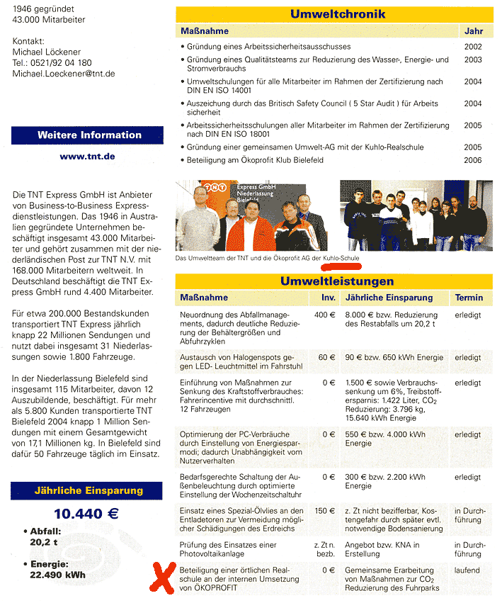 2006: Auszeichnung der Fa. TNT zum Bielefelder Ökoprofit-Betrieb